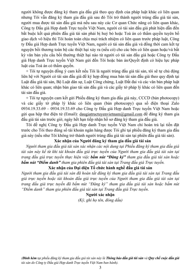 Phiếu đăng ký tham gia đấu giá (Hình thức Đấu giá Trực tuyến)