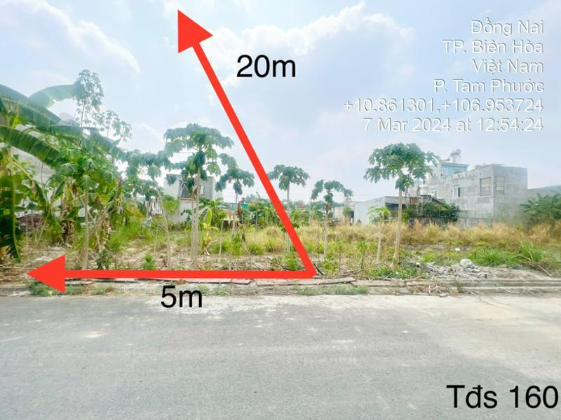 Quyền sử dụng đất và tài sản gắn liền với đất tại thửa đất số 160, tờ bản đồ số 72, phường Tam Phước, thành phố Biên Hòa, tỉnh Đồng Nai theo Giấy chứng nhận quyền sử dụng đất quyền sở hữu nhà ở và tài sản khác gắn liền với đất, số vào sổ cấp GCN: CS16916 do Sở Tài nguyên và Môi trường tỉnh Đồng Nai cấp ngày 13/03/2018, cập nhật chủ sở hữu ngày 25/01/2022. Diện tích đất 100m2.