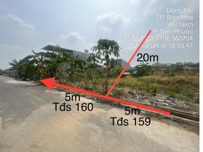 Quyền sử dụng đất và tài sản gắn liền với đất tại thửa đất số 159, tờ bản đồ số 72, phường Tam Phước, thành phố Biên Hòa, tỉnh Đồng Nai theo Giấy chứng nhận quyền sử dụng đất quyền sở hữu nhà ở và tài sản khác gắn liền với đất, số vào sổ cấp GCN: CS16917 do Sở Tài nguyên và Môi trường tỉnh Đồng Nai cấp ngày 13/03/2018, cập nhật chủ sở hữu ngày 25/01/2022. Diện tích đất 100m2.