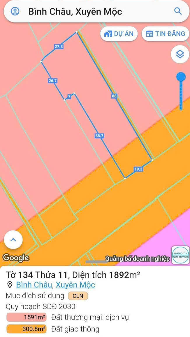 Quyền sử dụng đất và tài sản gắn liền với đất tại thửa đất số 527, tờ bản đồ số 32, xã Bình Châu, huyện Xuyên Mộc, tỉnh Bà Rịa – Vũng Tàu, theo Giấy chứng nhận quyền sử dụng đất, quyền sở hữu nhà ở và tài sản khác gắn liền với đất với đất số vào sổ cấp GCN: CS00580 do Sở tài nguyên và môi trường tỉnh Bà Rịa – Vũng Tàu cấp ngày 27/02/2018, cập nhật chuyển nhượng ngày 25/06/2021. Theo tra cứu tại Cổng thông tin quy hoạch tỉnh Bà Rịa – Vũng Tàu tài sản thuộc đất thương mại dịch vụ và đất giao thông.